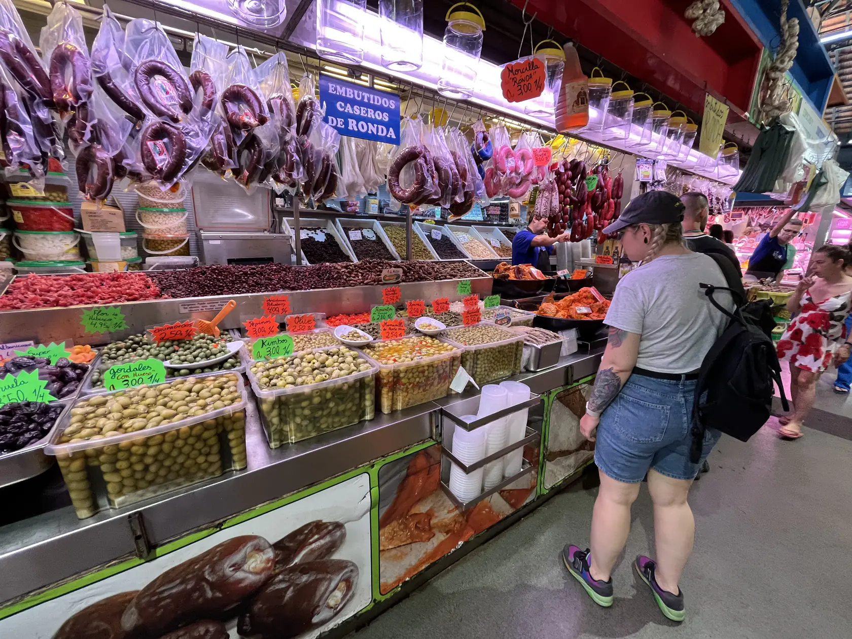 Now that we’ve acclimated to our surroundings it’s time to visit our first big city, Málaga! After we parked our car we visited the Mercado Atarazanas, it’s a covered central market where the people are proudly presenting their food. The market’s lively atmosphere provided a delightful sensory experience, offering a glimpse into the rich culinary traditions and daily life of Málaga. We strolled past stalls adorned with ripe fruits, fragrant herbs, and intricately displayed tapas, each offering a taste of the region’s gastronomic heritage. Engaging with the friendly vendors, we learned about the origin of their offerings and recommendations for must-try local specialties.