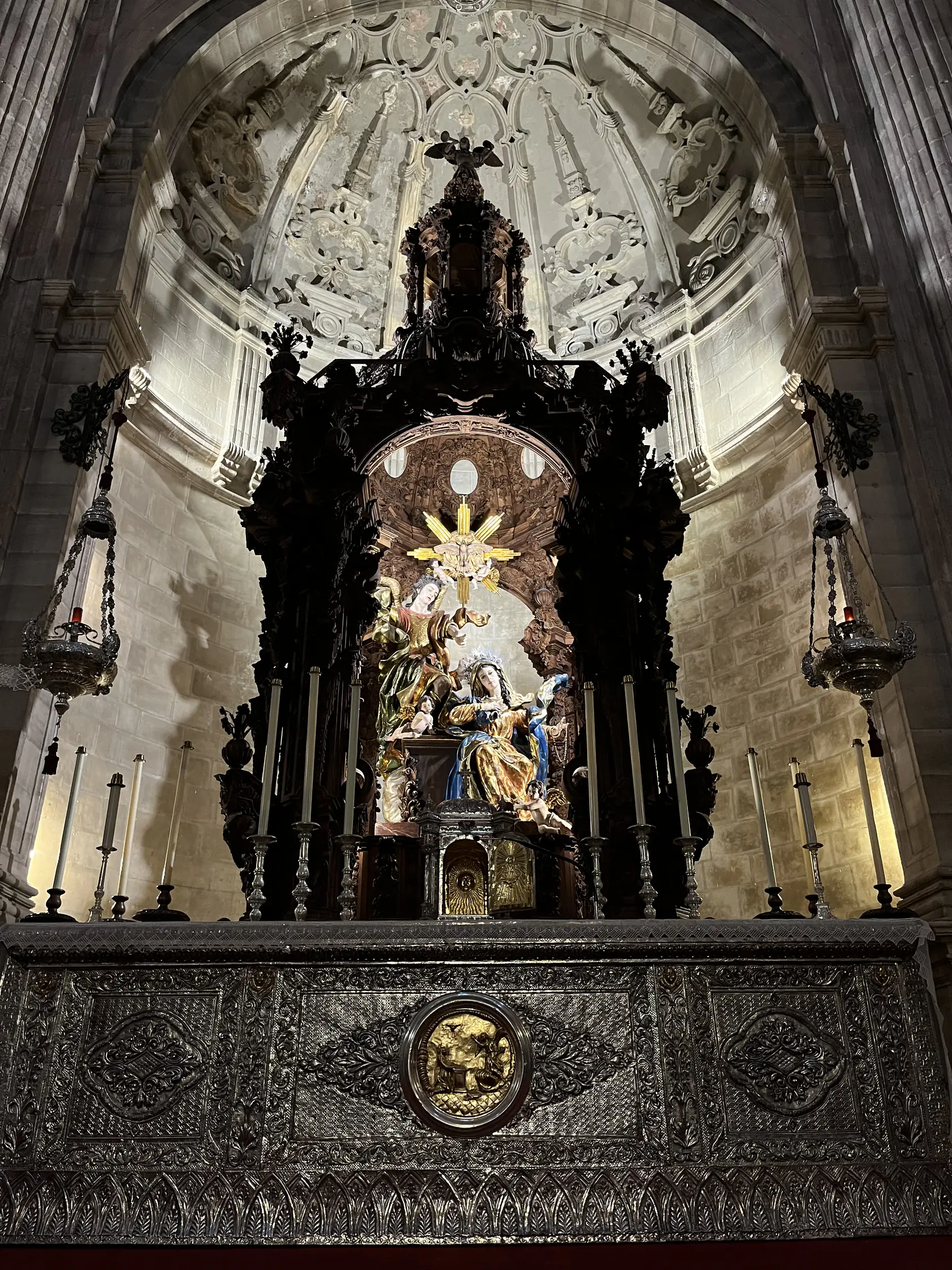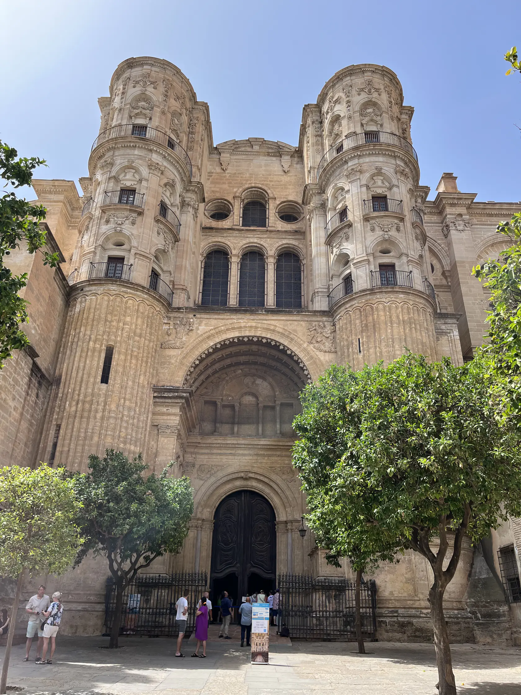 After the food market we visited The Cathedral of Málaga, known locally as “La Manquita” (the One-Armed Lady), is a stunning example of Spanish Renaissance architecture. Its construction began in the 16th century and continued for over 200 years, resulting in a blend of Gothic, Renaissance, and Baroque styles. The cathedral’s impressive façade, intricate interior, and towering vaults make it a must-visit landmark in the heart of Málaga’s historic center.