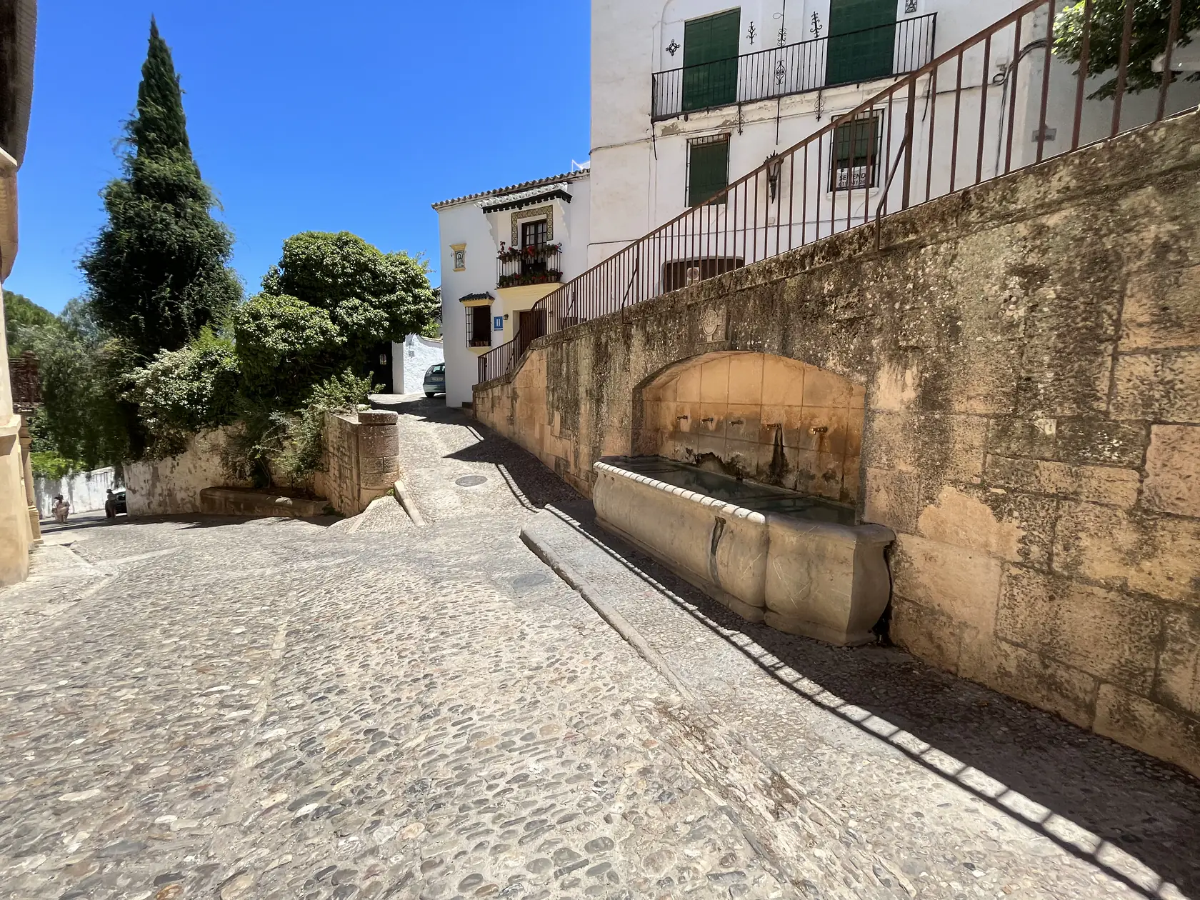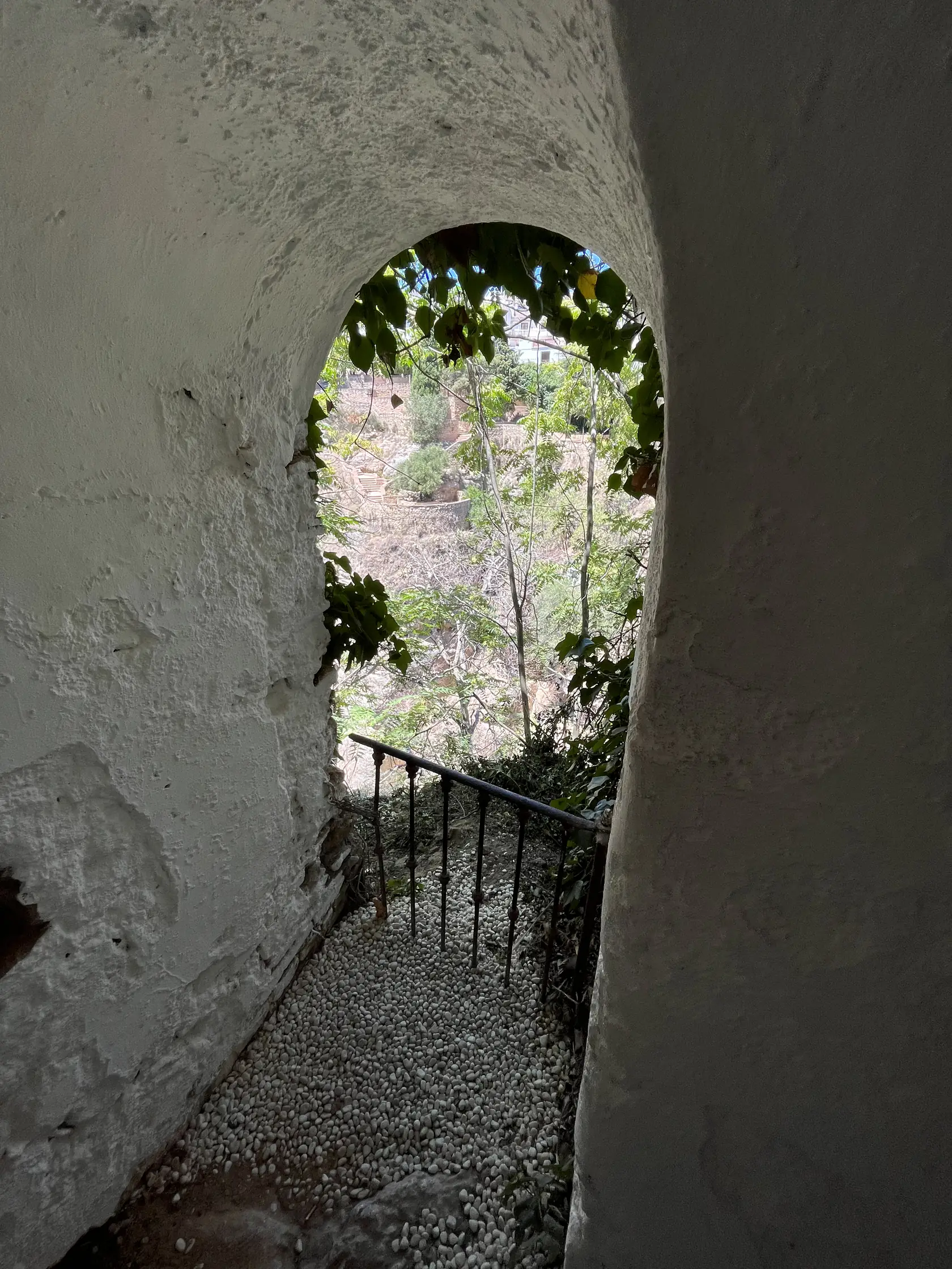 After entering a doorway in the garden, several hundred steps take the visitor down into a Moorish mine that was used to draw water from the Guadalevin river during times of sieges and civil wars, with a human line of Christian slaves being the unfortunate people who had to carry out this arduous work.